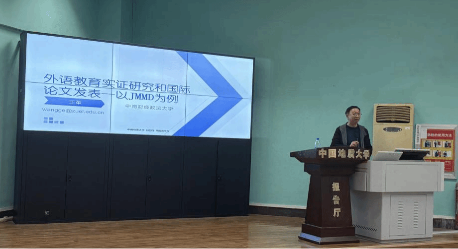 (通讯员:王可可 摄影:于鑫鑫、王子妍2025111314:30,beat365唯一官方网站“南望今声”外语论坛系列讲座第77期在北一楼学术报告厅举行。中南财经政法大学王革教授应邀莅临beat365唯一官方网站题为“实证研究国际论文发表以国际核刊JMMD为例”的学术讲座。beat365唯一官方网站张伶俐副院长主持讲座,师生共100余人参与学习交流。