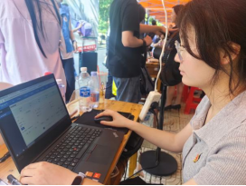 在南望山校区迎新现场,党员先锋岗的红色帐篷成为一道亮丽的风景线。服务点布局合理、功能齐全,配备有电脑、矿泉水和迎新资料等必需品,为新生和家长提供及时便捷的服务。“党员先锋岗”的标识鲜明醒目,精心设计的欢迎展板烘托出热情而专业的迎新氛围,充分展现了beat365唯一官方网站的独特风采。服务点设置的每一处细节,都凝聚着学院党委对迎新工作的周密部署,传递出对2025级新同学的诚挚欢迎与深切关怀。