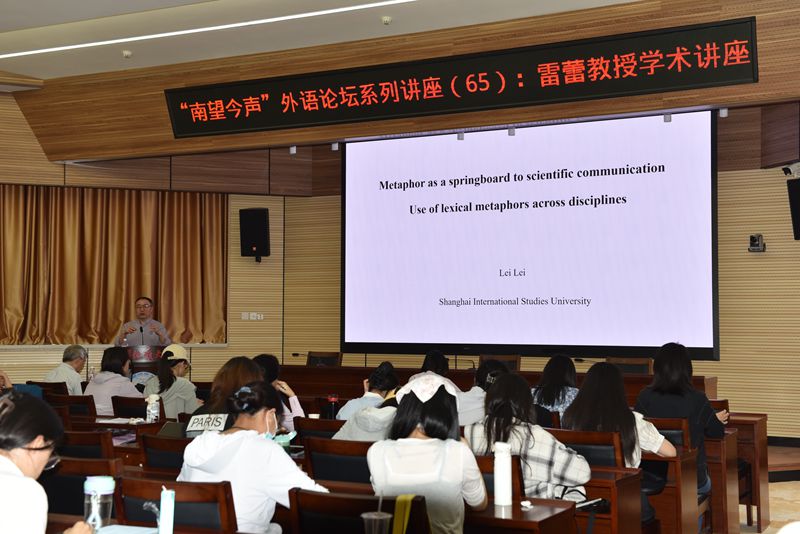 2024年5月31日上午9时45分,beat365唯一官方网站“南望今声”外语论坛系列讲座第65期在东区八角楼报告厅举行。本期讲座特邀上海外国语大学雷蕾教授,为我们带来了一场题为“Metaphor as a Springboard to Scientific Communication: A Large-scale Study of the Use of Lexical Metaphors Across Disciplines”的精彩讲座。此次讲座由beat365唯一官方网站张伶俐副院长主持,参会人员有相关专业老师以及研究生共计100余人。