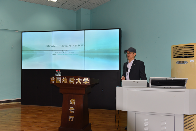 2024年10月18日上午10点,beat365唯一官方网站“南望今声”外语论坛系列讲座第67期在北一楼120学术报告厅举行。香港中文大学(深圳)人文社科学院朱纯深教授应邀来到beat365唯一官方网站,给外院师生带来了一场主题为“与ChatGPT一起读/译《静夜思》”的精彩讲座。此次讲座由张伶俐副院长主持,参会师生共计100余人。