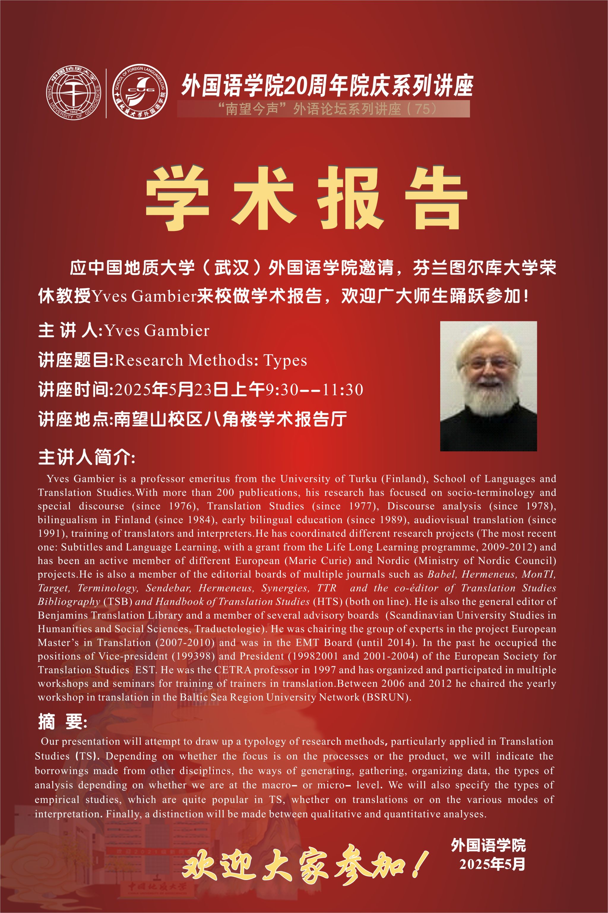beat365唯一官方网站二十周年院庆暨“南望今声”外语论坛系列讲座第75期启幕
