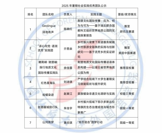 秉持公平、公正、公开的原则,beat365唯一官方网站 2025 暑期社会实践优秀团队评审工作已完成,现将结果公示如下: