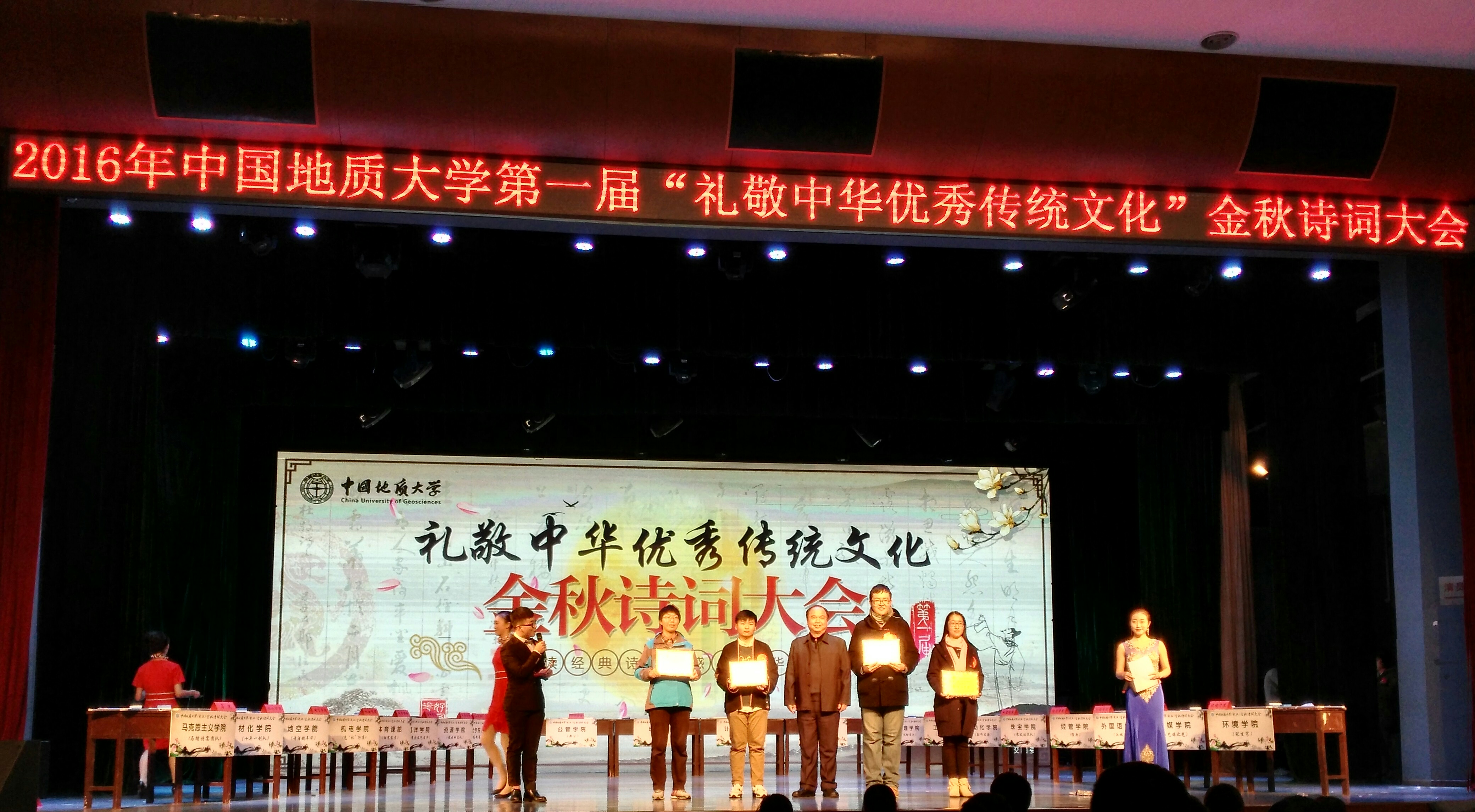 (通讯员 宁蒙)在11月25日,beat365唯一官方网站第一届“礼敬中华优秀传统文化”金秋诗词大会在弘毅堂举行,beat365官网研究生16级学硕班殷曼姝、本科生091134班何福麟、091142班胡金佩组成“江城子”队,代表学院参加了本次比赛,并获得团体二等奖的优异成绩。