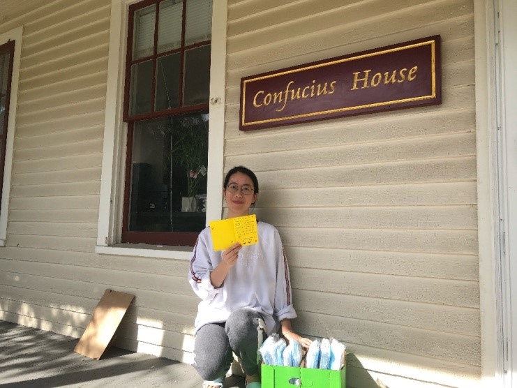 三月和四月,我们所居住的孔家变成了一个捐赠口罩的重要桥梁,我们通过邮件告诉学校还在工作的教职工和留学生,还有周边社区的居民们,如果非常需要口罩(由于工作性质,像消防队、社区医院、学校食堂等部门还在工作;有些留学生无法回国,也滞留在学校),可以邮件联系我们,我们会根据情况以及我们手头多余的口罩数量进行捐赠。我们把口罩用信封包起来在信封上写好名字,放在门口的信箱,通过邮件告诉他们取口罩的时间,这样就实现了零接触捐赠口罩。