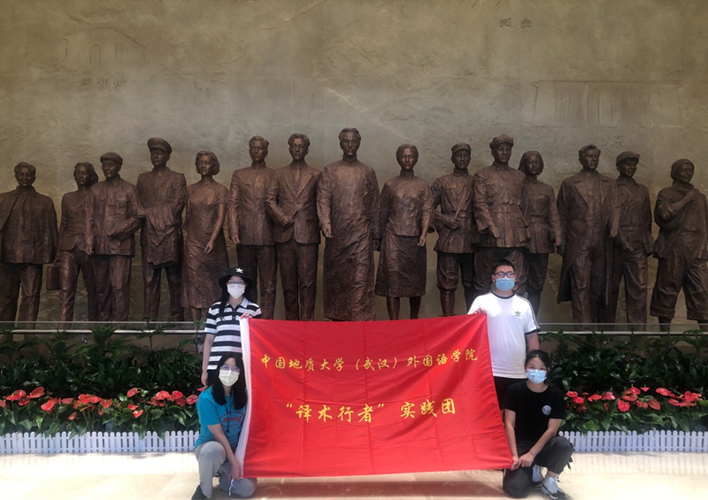英雄武汉,红色血脉,岁月荣光;湖北省更是拥有丰富的革命历史文化资源,红色景点遍布全省,团队成员通过走访,感悟历史,缅怀先烈。在翻译研究中,进行了大量的史料学习,这些过程演化成了更加生动、深刻、持久的红色教育实践课,让他们实实在在受到教育、坚定信念。“我们做红色景点校内双语推介展时,有留学生朋友跟我说,之前只知道中国领袖毛泽东,参与了你们的展讲才知道,原来湖北本土就有这么多英雄。”团队成员蔡琪在向留学生推介湖北省红色景点后,更加体会到让世界了解红色湖北的必要性。