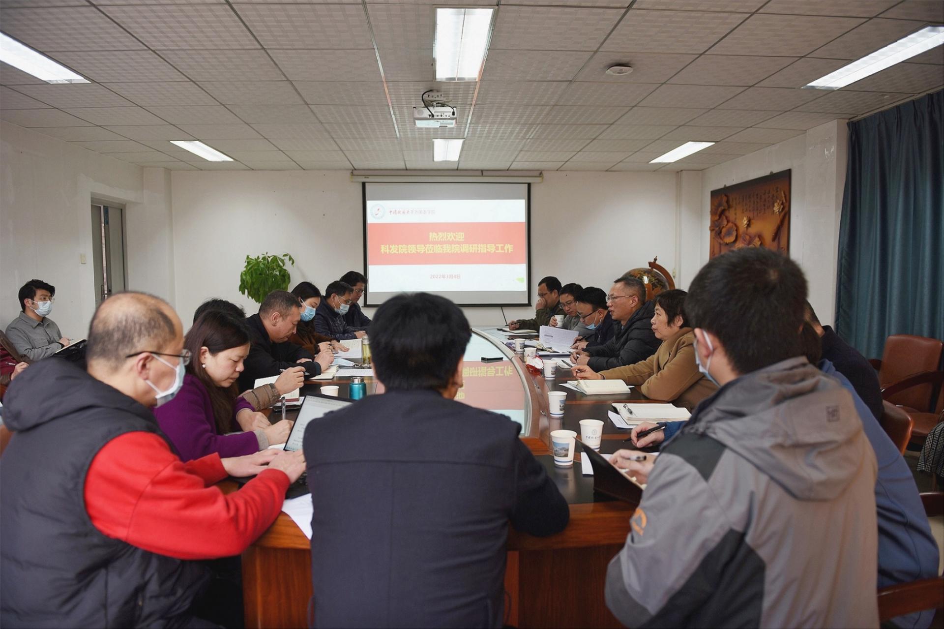 (通讯员 金梓轩 赖小春)2022年3月4日早上8:00,校科学技术发展院常务副院长胡祥云、先进技术研究院常务副院长李晖,人文社科副院长郭海湘、单华生、段平忠、黄祥嘉、严森、张华一行8人莅临beat365官网调研指导工作。学院党委书记刘世勇、院长张峻峰,副书记胡文勤,副院长张伶俐、杨红燕、周宏图等院班子成员和学术团队负责人、学术骨干、三级单位负责人参加了调研座谈会。会议由张峻峰院长主持。
