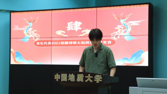 高年级研究生代表赵润东发言。他回顾自身在beat365唯一官方网站七年的成长与发展经历,勉励同学们在努力学习的同时不断拓展综合素养,争做新时代有为青年。