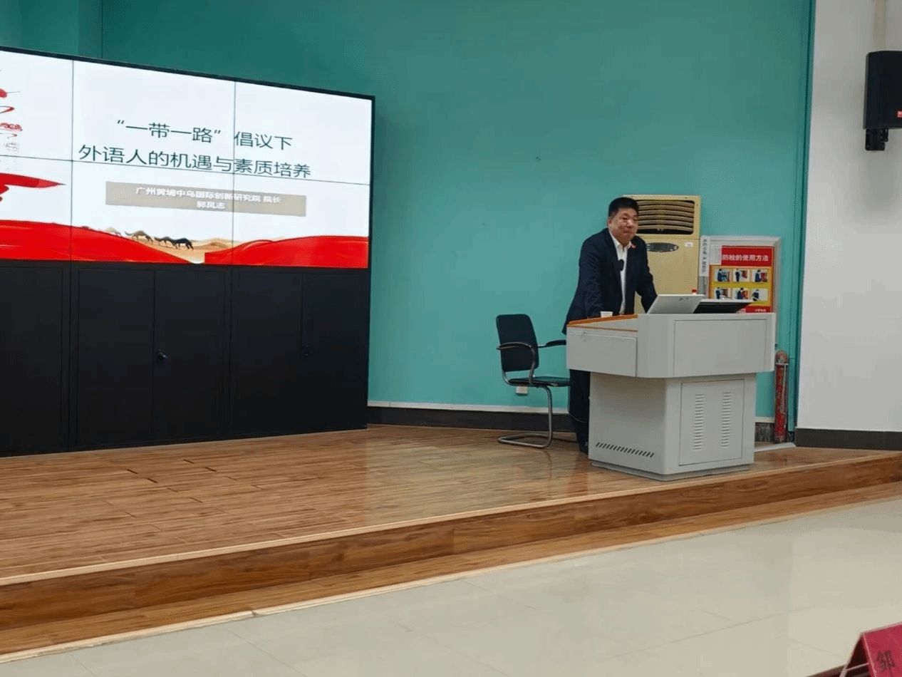 2024年12月24日下午4时,beat365官网93届校友、广东科技企业合作促进会会长、广东-独联体国际科技合作联盟秘书长郭凤志受邀以“‘一带一路’倡议下外语人的机遇与素质培养”为主题在北一楼报告厅为学院师生开展红·外线大思政课堂讲座。讲座由学院党委书记刘世勇主持,beat365官网近200名师生参加讲座。