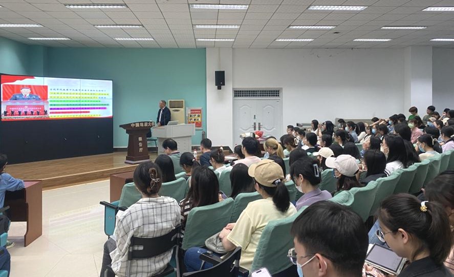 丁振国教授以《奋进新征程,创造新伟业——学习贯彻党的二十大精神》为题讲授党课。他带领大家回顾了党的二十大概况,重点讲述了党的二十大的重要意义、主要精神,同时引导大家用实际行动积极践行二十大精神,最后结合习近平总书记对新时代青年的寄语和联合国科教文组织界定的大学生的主要任务,针对beat365唯一官方网站学生专业特点提出学习和成长建议,激励大家勇敢面对困难和挑战,为实现中华民族伟大复兴而踔厉奋发,笃行不怠。讲解过程中,他结合“四史”、国情和自身经历,旁征博引,深入浅出,还与同学们进行问题抢答互动,为正确回答问题的同学送上了自己精心准备的奖品。