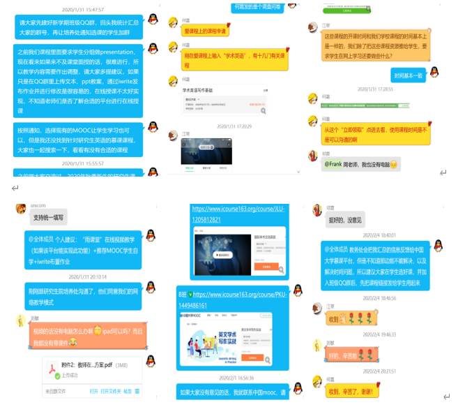 自1月30号开始,在校研究生院的具体要求和指导下,学院张基得书记、张峻峰院长高度重视,积极部署。承担beat365官网研究生公共英语教学的老师们充分利用原定返校开学日期前的时间,在QQ群里开展头脑风暴,充分讨论如何因地制宜地开展学习、教学和研究工作,迅速制定研究生科技英语写作与交流“一课一策”教学工作组织方案。