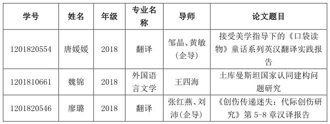 校级优秀硕士学位论文候选名单公示